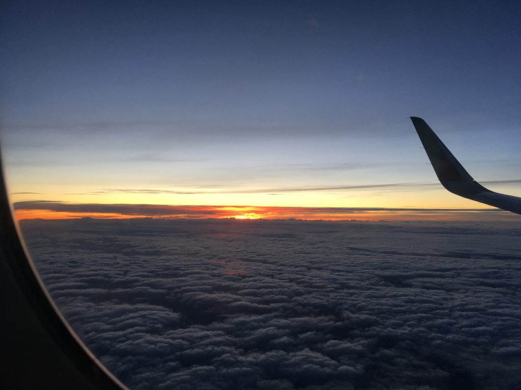 Notre avion a décollé le mardi 14 janvier, en direction de Lisbonne, puis Paris, pour enfin arriver à Nantes le mercredi après-midi: c’était très long…