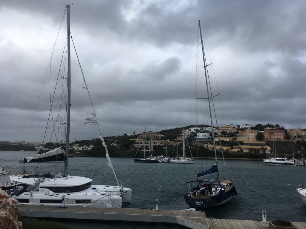 Nous sommes arrivés épuisés, le vendredi 9 novembre, à Puerto Mahon, à 14h30. Notre position est N 39°53.321′ E 4°17.737′.