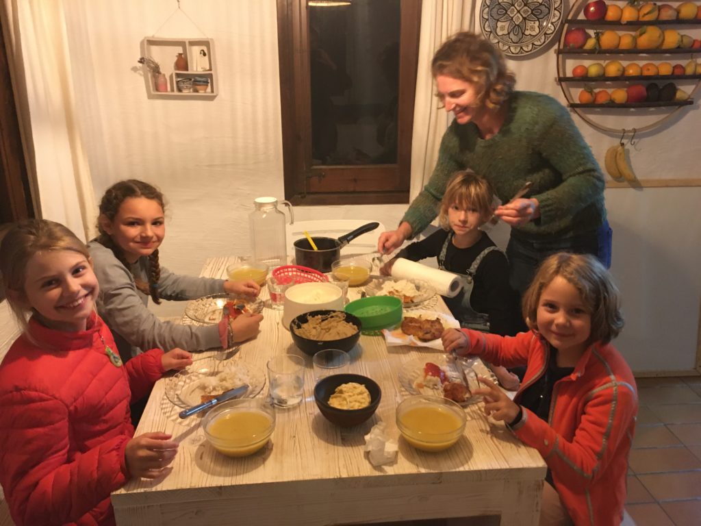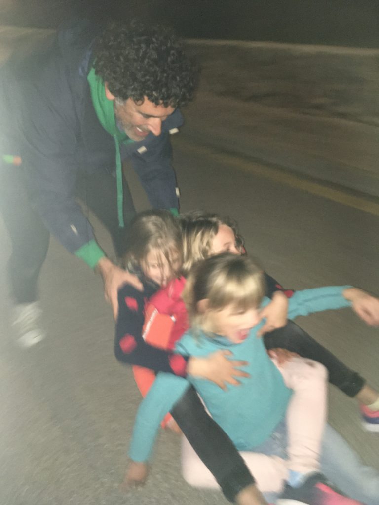 La tempête est revenue, elle nous a bloqué toute la journée du dimanche dans le bateau. Avec 100 km/h de vent, la nuit fut stressante. Heureusement, Marine nous a mis en contact avec sa copine Marie, Fernando, Susana (9 ans), et Anouk (6 ans) qui vivent sur l’île.
